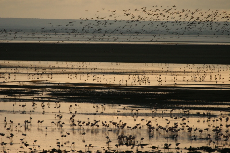 Then overnight it rained, and the following evening the lake was full of flamingos!