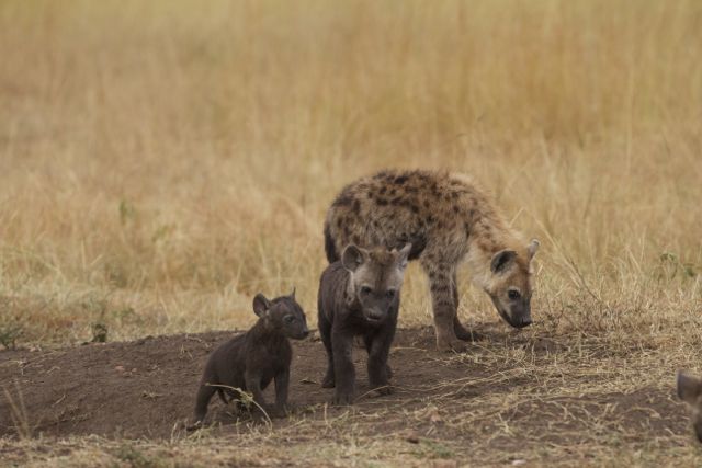 Unfortunately, in order to get out of the vehicle and change the tyre, we had to send the mother scampering off and the hyena pups scurrying for their burrows.